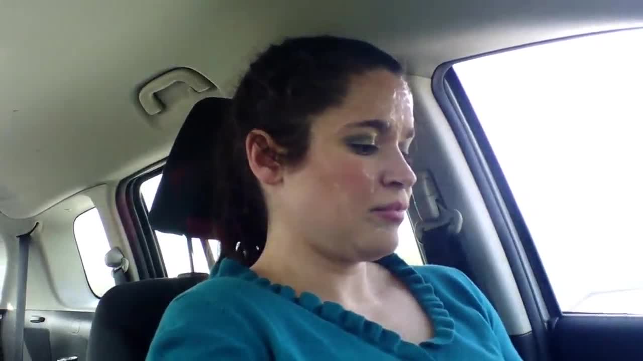 Risky car sex in public with massive facial cumwalk