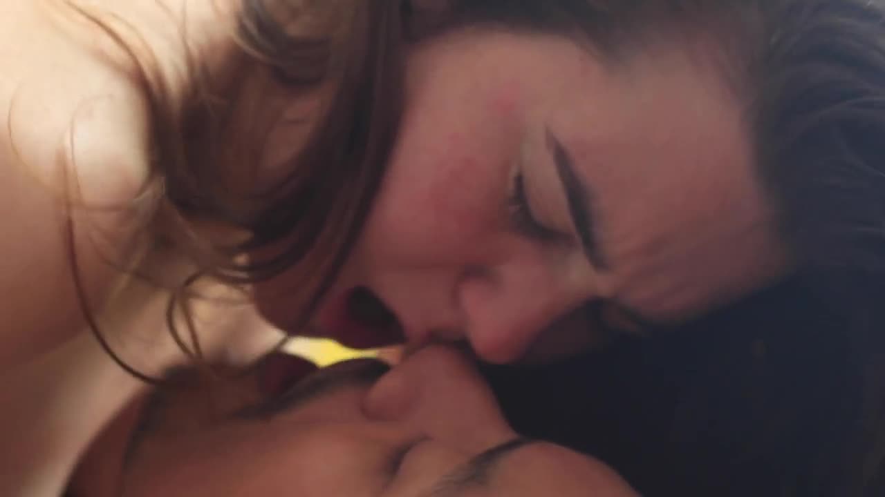 classic lesbian lovers explore each other's bodies with passionate licking and kissing in retro style