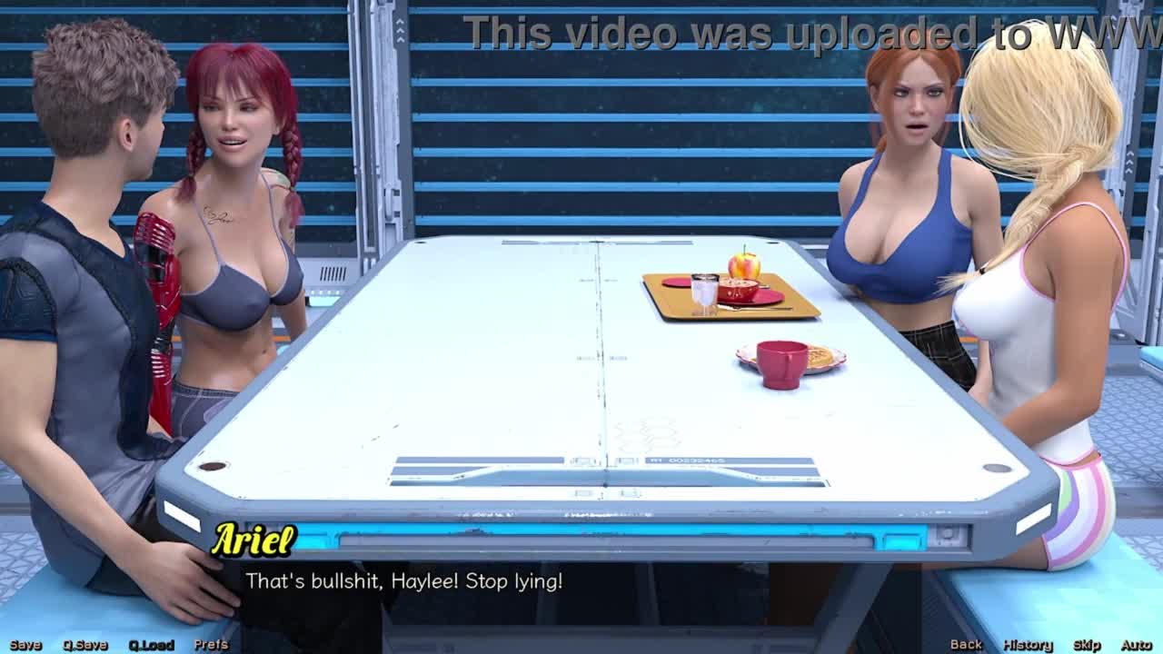 Stranded in space, she gives public handjob to crew member.