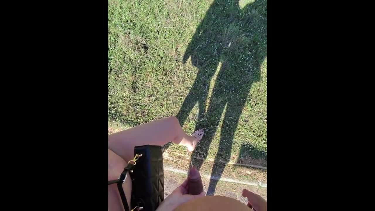 exhibitionist milf wife gives handjob to big cock on nude beach in front of voyeur with cum - misscreamy